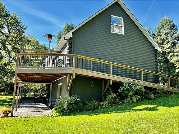 A delightfully crafted log cabin home in a private setting of 1.8 acres! 3 bedrooms including loft area as bedroom or studio area. New hardwood flooring throughout with new interior handcrafted doors! Full dry basement with family room and exterior entrance to patio area. Kitchen, dining and living room open to spacious outside decking for relaxing and enjoying the peace and quiet of the Keuka Lake area! Great location close to area Marinas, Wineries, Distilleries, Breweries and the convenience of boat launching at Keuka Lake State Park! Don't miss this opportunity for all season living or a vacation retreat! FEATURES 1Gbps fiber