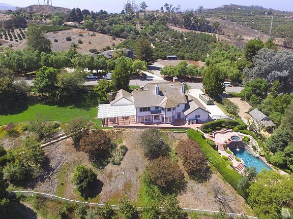 Equestrian Dream Ranch on Over 6 Acres in Santa Rosa Valley. The Epitome of Casual Elegance. Panoramic views from this magnificent horse ranch with miles of white fences, and your own private equestrian facilities which can be entered through a separate gated driveway entrance. Equestrian facilities include:large arena (without railing or lights) /two Ring of Steel barns with mare hotel, office, laundry facilities, tack rooms, hot walker, and many more sought after amenities. Upper barn w/9 stalls includes 1 double and 2 tack rooms, a double wash area with warm/cold water. Lower barn 5 stalls and 1 large tack room. Huge arena with a vintage shaded viewing area. Premium cloth footing in arena. Facilities include bathrooms and washer and dryer, private gated entrance. Sits atop of a ridge which looks out at breathtaking views of the property and beyond. The master bedroom gazes over the entire picturesque setting, including the backyard which showcases a gorgeous pool and outdoor entertainment area. The formal entry welcomes you with a magnificent chandelier and spiral staircase. The home features a large library/office with a hand-hewn carved mantle over a stone fireplace. Located in award winning Santa Rosa Technology Magnet school district with new Computer Science Immersion program. No HOA which provides you extensive possibilities for the unfettered utilization of your home.