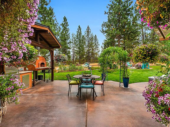 This artistic & eclectic Shevlin Ridge custom home seamlessly blends outdoor living with the charm of an Italian farmhouse. Exceptionally private .40 acre lot with serene views of Awbrey Butte & the Paulinas. Easy access to trails, parks & Westside amenities. Open & airy great room with loft, gas fireplace & charming kitchen furnished with live edge quartzite counters, oversized island, DCS 5 burner range, copper & travertine sinks. Dining area flows smoothly through French doors to a backyard oasis with timber framed cover for BBQ & Italian wood-fired pizza oven, garden beds & a hot tub. Primary suite opens directly to the concrete patio & pergola covered seating area & features 10' ceilings, defined office space, bath with travertine floors, dual head shower & two vanities. Unique details abound from reclaimed posts & beams to vintage hardware & repurposed doors. 3 car garage includes 35' RV bay with 12' door plus rooftop solar; just a few of the surprises awaiting you here!