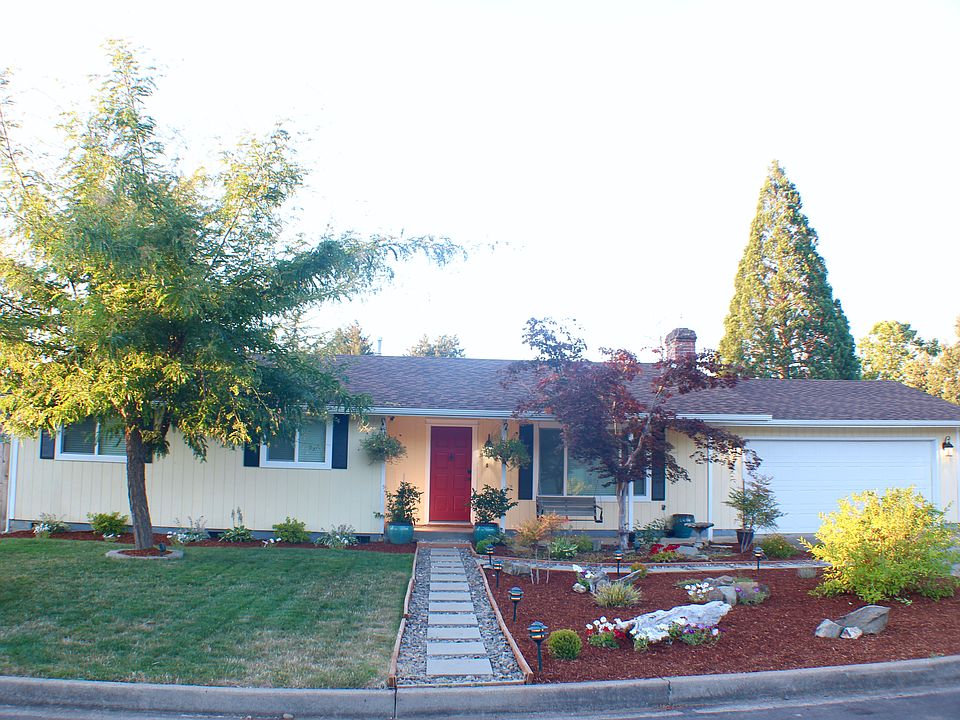 Beautifully updated home in desirable, quiet neighborhood. Granite countertops, new cabinets, custom tile and solid hardwood throughout. Stainless appliances and deep, zero-radius kitchen sink. Luxurious bathrooms, spacious master suite, open floor plan, new roof, new windows, wood burning fireplace. Landscaped with privacy fence, mature pear tree. 2 car garage with loads of built-in storage. Additional workshop, large garden shed, and extra parking.