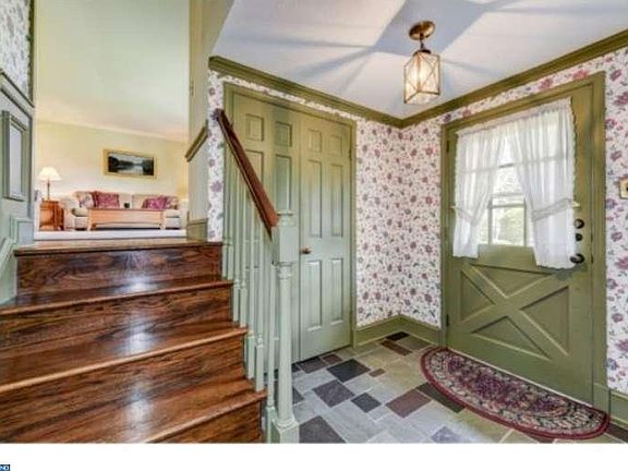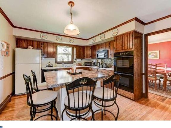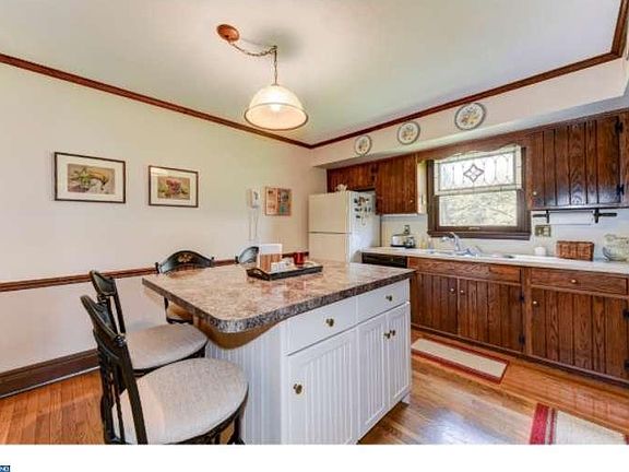 What a great location! A minute to Route 413, five minutes to Doylestown Borough in a sweet little community of homes with wide streets. Beautiful one acre lot! That's right-one full acre of open yard with lush lawn and lovely landscaping in Buckingham. The wonderful driveway is grey stamped concrete and mighty impressive looking. And very impressive is this home itself! Enter into the foyer with slate floor and double door closet. Then up a few stairs to the main floor or straight into the comfortable family room. Half wall paneling, custom built-ins and a large brick wood burning fireplace and hearth as a focal point. There is an entrance to the covered patio and the serene backyard with just the right amount of shade trees. The Laundry room and powder room are on this floor as well as the inside access to the garage. On the main level, the kitchen is thoughtfully laid out and features the beautiful wood floors found throughout this and the upper level. A square center island with storage is great for food prep or kitchen dining. Cook top, double wall ovens and double sink with a window overlooking the sunny backyard. In fact, this is a really sunny and airy home throughout! The Formal dining room has a beautiful picture window, chair rail and crown molding and shadow box wainscoting. The spacious living room completes this level. Up another few stairs to the bedroom level. Gleaming hardwoods are found throughout this entire level as well. The main bedroom has a separate entrance into the well appointed hall bath. Double closets are separated by a window seat with lid; great for storing blankets. The second bedroom has French door closets and the third features beautiful built in shelving under each window. All have ceiling fans. Behind a door and up a short flight is the fourth large bedroom suite. Double skylights (and there is another skylight in the ensuite bath), custom built in desk and bookcases and a big cedar closet with steps up to the floored attic are the highlights of this room. Cubby doors lead to even more storage. Great layout in the full bath with glass enclosed corner shower. One car garage, unfinished basement with two separate rooms for maximum storage and work space, garden shed, Blue Ribbon Central Bucks Schools and a terrific location make this beautiful home an excellent choice.