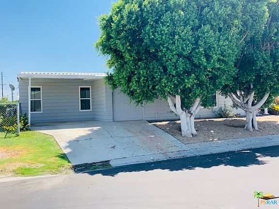 This is a 2BD/2BA manufactured home, boasting 1512 sq. ft in an open floor plan. Located in the highly desired Tri-Palm Estates & CC. The home is located on a large corner lot and has many features such as, a private outside open patio area, a beautiful sun room that could also be another bedroom or game room, let your imagination be the guide. A large attached carport that has been converted into a two car garage. This is a 55+ golf course community. HOA offers unlimited free golf for two, activities such as shuffle board, restaurant and bar. Why would you ever want to leave home?