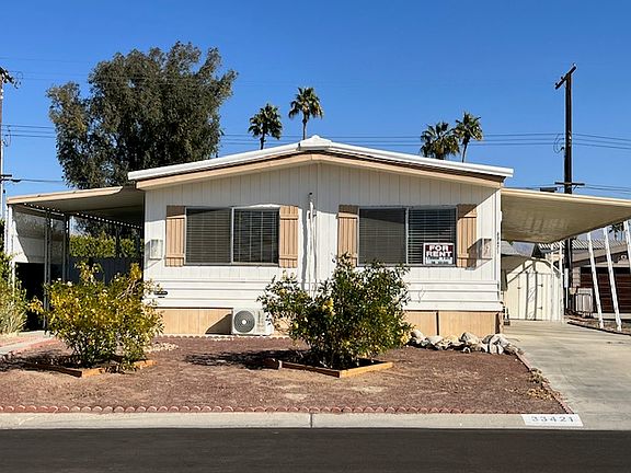 Welcome to Tri- Palms Estates located in a 55 + community. This home is located on a quiet street and offers 2 bedrooms, 2 bath. A spacious floor plan with living room, dining area, and laundry room with built in office area. Kitchen offers a breakfast bar and opens to the dining area and living room. Fenced Back yard with two storage units and carport. Club house offers an active lifestyle; offering 27 holes of golf, restaurant, lounge, fitness center, lighted tennis courts, Olympic size pool, and spa. Close to shopping, schools and freeway access. Imperial Irrigation District = low utility cost. Call for a showing appointment.