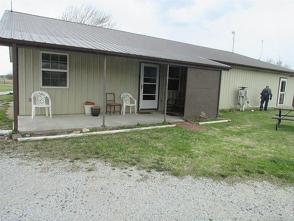 Perfect move in ready home on 20 acres. Newer low maintenance 3 bed, 2.5 bath, office (3rd bedroom)and over sized 2 car garage plus shop (800 sq ft). Open concept w/stained concrete floors. Custom cabinets in kitchen, nice sized island with seating and storage (full roll out drawers). Gourmet 5 burner gas stove. Laundry room includes a half bath. There is a 40 x 36 barn w/2 (8 x 20) storage containers. Plus a carport. Acreage is fully fenced, open pasture, tree line and nice sized pond. A storm shelter