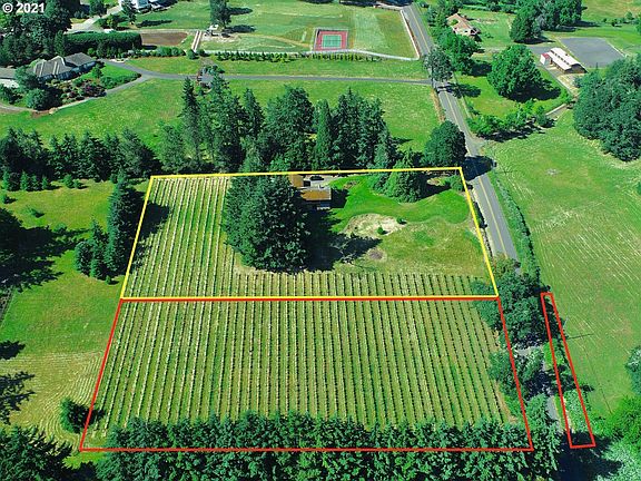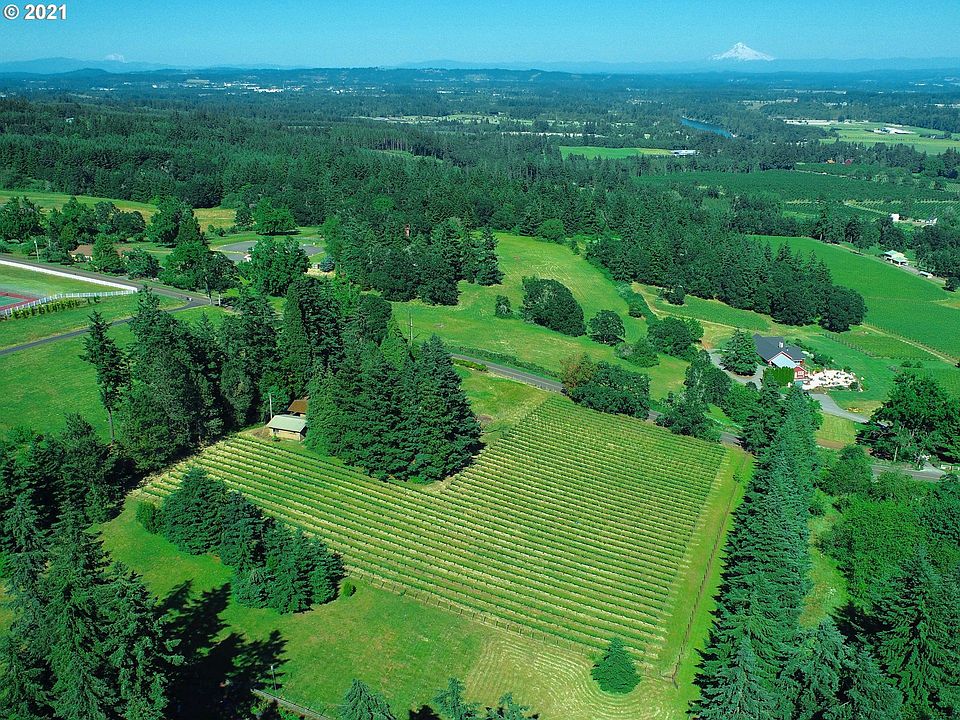 Build your dream home! Two tax lots with Mt. Hood views and a vineyard. Gated and fully fenced, private, peaceful and close-in. Vineyard rights transfer to buyer after 2021 harvest. Only one buildable lot, existing structures have no value.
