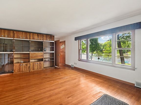 Welcome to this enchanting Cape Cod home on lovely Valley Lake, where you can swim in the summer and ice skate or play hockey in the winter. Enjoy kayaking, paddle boarding, fishing year-round, and first-rate sunsets. Sitting on an oversized 90 foot waterfront shoreline lot (1.5x), the home features beautiful hardwood floors, abundant wood and natural finishes throughout, and spacious rooms with a variety of lake views. With four bedrooms, 1.5 baths, and a full walkout basement with a custom bar, this home offers both comfort and character. You will enjoy the additional convenience of a shower and sauna in the basement! The neighborhood boasts terrific neighbors, excellent township services, great schools, easy access to the tollway and two Metra lines, and plenty of shopping and dining options.Enjoy numerous parks and bike paths in this vibrant community plus keyed access to motorized Gages Lake. Don't miss the chance to own this captivating property! Estate sale sold "as-is."