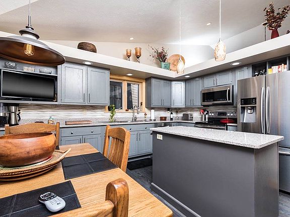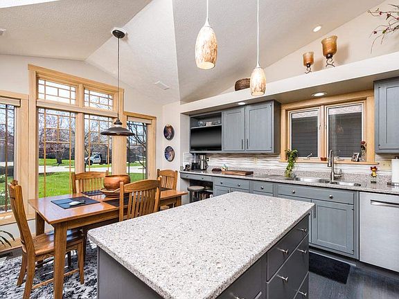 Surrounded in a peaceful setting with walking trails along the river, and peaceful evenings,this 4 bedrooms, 3.5 bath walk out lower level home spreads out w/ over 3400+ square feet of finished living space. and sits on 1 1/2 lots. Offering maintenance free living and almost completely updated within the last 2 years this home is a must see! Vaulted ceilings, spanning property views,gorgeous custom tile fireplace with flanking bookcases,and formal or informal dining area! Desirable 4 season room that walks out to a deck area with retractable awning. Gorgeous custom updated gourmet kitchen with new appliances, new granite counter tops and backsplash, large pantry,plus plenty of prep room,breakfast bar and dining area! Main level master offering spa like features and updates with a dream come true 13 x 13 walk in closet. Upstairs 2 additional bedrooms, one loft area, could be used also as an office,art studio,or exercise room. Downstairs enjoy the LL family room with 2nd fireplace, indoor shuffle board, mini bar, 4th bedroom, and full bath. Updated ML laundry, and oversized garage with new door and opener. Whole house surround sound, Updates include: roof, mechanicals,flooring,fresh paint,landscaping,both bathrooms,kitchen, lighting fixtures, and the list goes on. Impeccably maintained and cared for. What's not to love?