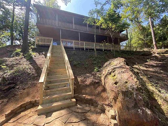 The ideal private family retreat for social distancing! Enjoy a lake on both sides of the property, yes, two lakes! Fish, relax, get away from it all, yet only be a few minutes to Longview or Gilmer. There's a gate to enter your private space in nature with a circular drive. The middle floor you enter features a large formal living and dining space, a half bath plus 2 bedrooms both with full ensuite baths. Upstairs you have a full bath with a large bedroom (or two) plus a game room. The bottom floor boasts a massive den with bricked wood burning fireplace, updated kitchen, half bath, laundry room and the master suite. The front porch and two upstairs floors have covered decks overlooking the lake and running the length of the home. There are 3 A/C units (installed June 2020) and 2 water heaters. The smaller lake near the front is stocked with brim, has a non functioning pier and only one other homeowner adjacent to it (he owns 2 homes, the metal home is currently unoccupied). The big lake out back is stocked with small bass, and has 3 other owners who have access. You will have a hard time finding another property quite like this unique beauty!! We will need to survey and then find out for certain the exact acreage, estimate to get into both ponds it will be around 6-6.5 acres +/-.