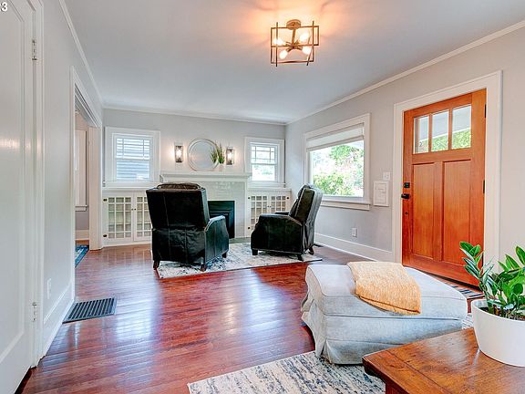 This well-maintained Irvington home exudes charm and character, capturing the essence of a classic older home with modern conveniences. Situated in the historical Irvington neighborhood, with sweeping views over Irving Park and near to Fremont St's cafés and restaurants, this property is located in one of Portland's most sought-after neighborhoods. The first floor contains a living room with gas fireplace, updated wood floors, a dining room with elegant light fixtures and a recently remodeled kitchen with Viking gas stove and stainless-steel appliances. The kitchen nook offers seating with views of the landscaped backyard and Irving Park's mature trees. Two full bedrooms, both with double closets, a thoughtfully located laundry closet and a recently remodeled bathroom with shower and clawfoot tub complete the first floor. The upper level boasts two further bedrooms, both with large walk-in closets, a second full bathroom and a large den. The finished basement offers an additional family room and a bar with granite countertops perfect for entertaining. A second location for laundry can also be located in the half bathroom on this level. This home feels fresh and well taken care of with updated electrical, newer windows and a heat pump system. The exterior has also been meticulously upgraded, with an oversized front porch overlooking 11th Avenue's tree lined street. The rear yard contains landscaping and hardscaping with drip irrigation system and a dog bath with hot and cold water.