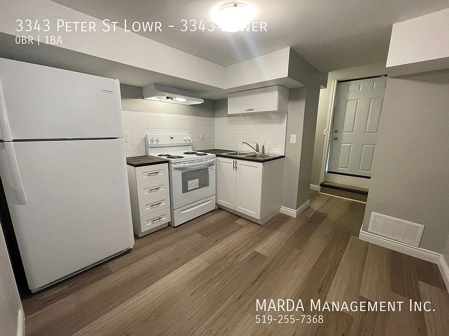 Welcome to 3343 Peter (Lower), a bright and modern lower unit just minutes from the University of Windsor, Sandwich St amenities, pharmacies, restaurants, Dollarama, and major bus routes. This updated space features sleek vinyl flooring, a fully equipped dine-in kitchen with white cabinetry and appliances, and a stylish 4-piece bathroom with a tub/shower combo, marble-look tile, and a mirrored vanity.