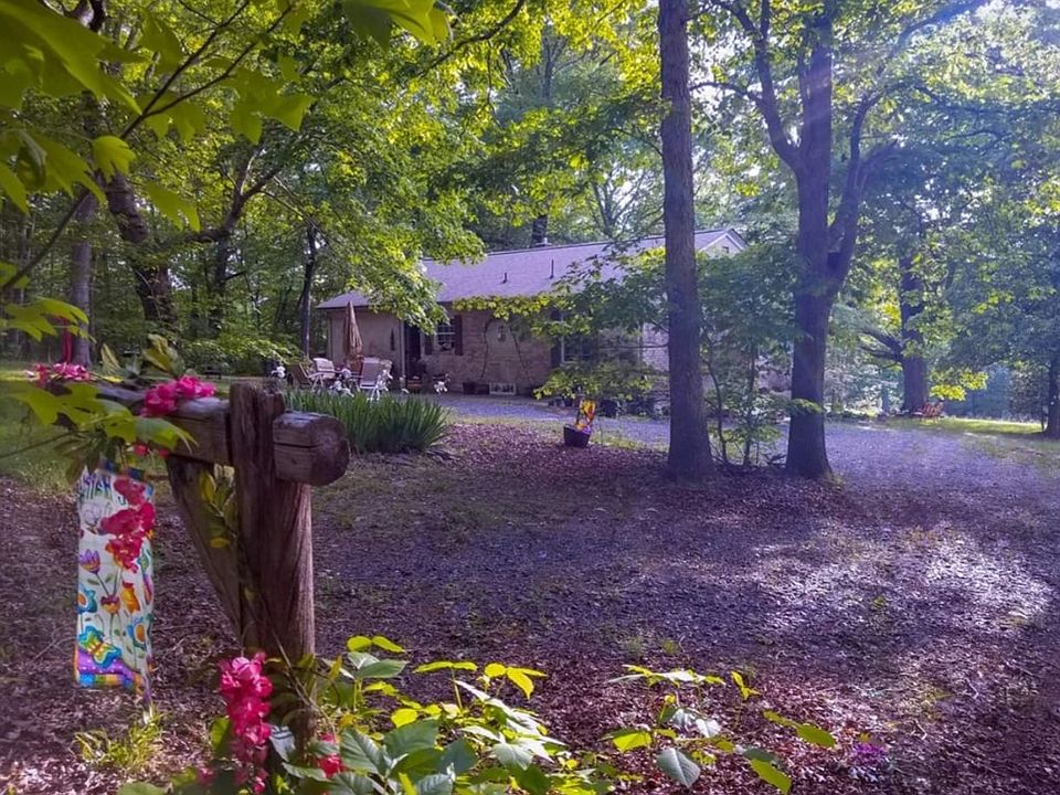 Welcome to 3343 Pisgah Covered Bridge Road located in the heart of the Uwharrie National Forest in the south west region of Asheboro North Carolina. This exquisite furnished Spanish Revival home is a very rare find, reminiscent of a European Villa, lauds lush foliage, meticulously landscaped with multiple charming gardens. This authentic one of a kind custom built home has many features not found in traditional architectural designs. Natural resources were used to build the walls and line the circle driveway. In keeping with the Pisgah Covered Bridge's historic location the home sits on a hill surrounded by the shadows of Maple and Oak trees. The lumber from the oak trees to build the sub floors, the rafters, and the floor of the attic. The mild climate of the Mediterranean encouraged outdoor living spaces include an outdoor BBQ area, patio furniture and a huge shaded picnic area. The front side lawn has a handmade Hammock that provides an exotic escape beneath the shade off the properties aged Maple trees. The main floor entrance has a rap around walkway and patio that leads to an outdoor BBQ pit area, garden with fresh herbs and vegetables and natural slate rock borders. There are hand crafted panes glass and metal doors on all three sides leading into the main floor. The kitchen is equipped with a black Whirlpool fingerprint proof refrigerator, black Whirlpool self-cleaning oven, black vented range hood, black graphite countertops and custom built oak cabinetry. The finished basement's concrete floor was meticulously graded and scaled to guide any water to the five strategically placed drains which feed out through underground piping into the ditch that runs into the drain pipes under the roadway. All of the plumping is located on the interior walls of the basement ground floor for easy access in the event that issues should arise which reduces the cost of never having to use contract labor for vendors. The hot water heater is also located on the ground floor and is linked to the energy efficient purification system. The basement is designed in keeping with the feel of a European Villa to have multiple purpose living spaces currently used as a Yoga Studio, Art Studio, Orchid Sanctuary and a cozy romantic, warmth and saltiness of a fireplace located in the central portion of the open space. Acting as an alternative source of heat and cooking utilization during the event of inclement weather. The fourth entrance is located on the western wing stepping down under a hand crafted awning that adorns hanging baskets filled with draping morning glories and herb garden. There mud room located just off the basements additional outside entrance leading to the secluded Laundry Area. The Laundry Area contains a matching Whirlpool white washing machine and dryer is tucked away to the side, complete with a hand crafted floating shelf for all laundry supplies. All furnishings are negotiable.