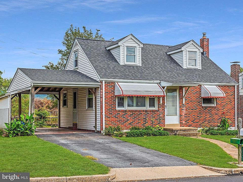 This awesome bright brick front 3 bedroom, 2 full bathroom cape complete with a carport is in a superb neighborhood. Some of our amenities include: Brand new roof installed in August of 2019; Good sized eat in kitchen with double sink, double oven, dishwasher, and ceramic tile flooring; There is new carpeting in the expansive living room and two main floor bedrooms; The first floor full bathroom has ceramic tile flooring a pedestal sink, and knotty pine wainscotting; Going upstairs there is a large main bedroom with berber carpeting and a beautiful full bathroom with hardwood floors, wainscotting and stall shower; The walk-up basement leads to the rear yard with complete with a large partially covered patio; The back yard is serene as there are no homes directly behind this property; Come see this fine home, I think you'll be glad you did!