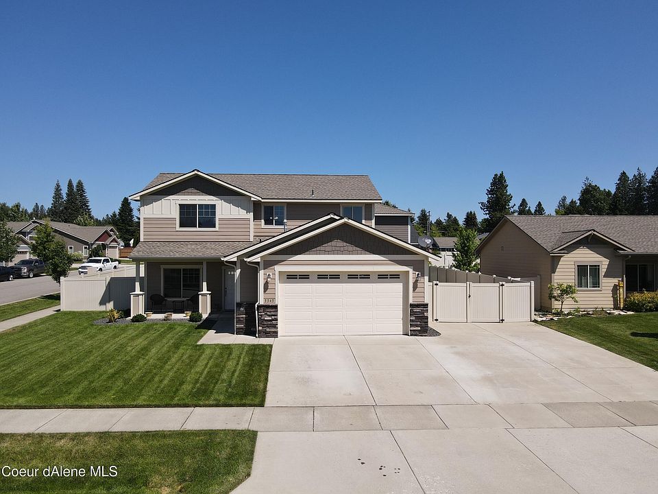 Desirable corner lot, Coeur D'Alene Home with just over 2000SF 4 bed 2.5 bath and additional den room and RV parking!! This lovely home features stainless steel appliances, granite countertops, and brand new LVP flooring on the main level! Enjoy sitting on your vast back patio with included gas fireplace, stubbed right into the gas line! No more propane tanks! Ready to get out and enjoy CDA? Orchard Lands sits right next to Atlas trail for easy biking/walking right to the 960 mile Idaho Centennial trail! Enjoy the Spokane river just a few minutes away, take a short drive/bike ride to Riverstone Park, or take a short 10 minute drive to downtown CDA. **New carpet just installed!