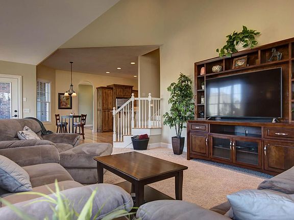 Amazing story and a half home with panoramic views from the front! Gorgeous blonde hickory hardwood greet you at foyer and extend throughout the main living/ formal dining room and hallways. Full wall of windows pulls you in as the room washes in daylight! French doors to your left offers the perfect office... to your right is a delightful guest suite w/ full bath access. The huge, private master suite offers raised ceiling, patio access and a wonderful master bath and huge walk-in closet. Open custom kitchen w/ gas range overlooks a large family room - perfection! Two additional bedrooms share a full hall bath and a large laundry room is well appointed. Upstairs - a large living area, large bedroom and full bath! The 3 car garage is oversized! Covered patio, fenced yard