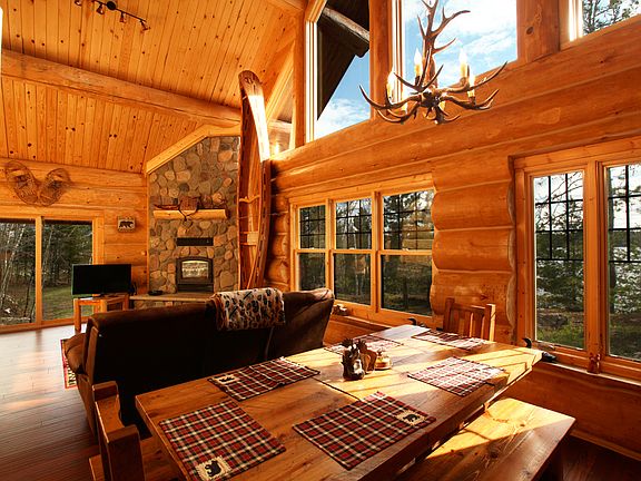 This is a Janisch Realty property! For more information call 218-780-6644 or visit www.janischrealty.com Secluded Like New Lake Vermilion Hand Hewn Log Retreat W/Sand Beach, Private Gradual Lot, Beautiful Views! Set In Towering Pines On 5.3 Acres & 275 ft Southwest Facing Shoreline, located on quiet Black Bay, just 15 mi to town. Built 2014, 1937 SF, 3BR/2BTH home. Vaulted great room w/natural light pouring in two story tall windows, massive stone wood burning fireplace, glass doors open to area for lakefront deck. Kitchen w/granite counters & island open to dining rm & great rm—all lakeside. 2 main flr guest bedrms & slate bath. Huge lakefront loft master offers private bth w/copper soaking tub, mesmerizing water views. Air cond, coverd entry, open yard for activites, concrete walks, dock, large garage, Compliant septic, drilled well, good internet. Listen to loon calls, catch fish off your dock, enjoy magnificent sunsets across the water! Click on link to view 3D Tour!