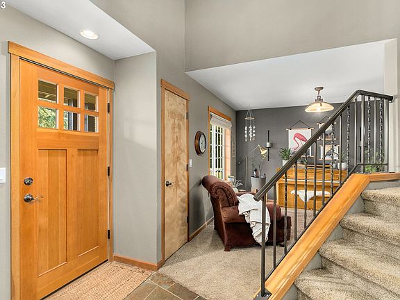 Outstanding Close-In Scappoose Location! Desirable Craftsman Traditional home nestled on private street. Gourmet kitch w/gas appliances, Soapstone counters, stainless, slate floors. Formal living w/gas fireplace. Huge upstairs bonus room w/high ceilings. Double lot on over 1/3 acre. Entertainment private backyard, w/multiple wood decks, chicken coup (10 chickens 1 rooster), fire pit, garden beds, shed, and fruit trees. Only 30 minutes to Downtown Portland and Intel.