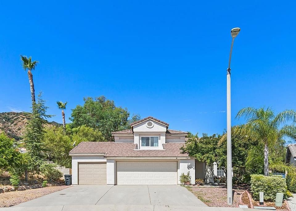 LAKE VIEW home in West Lake Heights, Lake Elsinore. SPACIOUS 4 bedroom, 3 bath, generous sized living and family rooms, formal and informal dining area. Deck off the upper Master Bdrm. 3 car garage with access to the backyard, home is at the end of a cul-de-sac. 2,293 Sq ft, Includes Refrigerator, washer and dryer. Seller is Original and only owner (and has the original Morrison Homes "Saint Ives" - Plan 2 "book"). This house is clean and ready for your personal updating to make it your home. EZ Commute, Ortega HWY 74 is a couple street turns away. Priced to sell $576,000