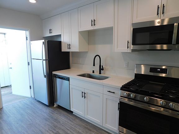 Welcome to Clairemont West where we are offering a bright, modern 2-bedroom home nestled in the heart of San Diego. This 735 square-foot residence offers a perfect. blend of comfort and convenience. Step inside to discover recessed lighting, hardwood-style flooring, and soft grey accents that create an inviting atmosphere. The spacious kitchen is equipped with all-new stainless steel appliances, including a gas stove, built in microwave, dishwasher, and refrigerator, complemented by custom shaker-style cabinets and Corian countertops. A full size washer and dryer are also included for your convenience. Enjoy natural light streaming through the new dual-glazed windows fitted with faux wood blinds while the living room's A/C ensures year-round comfort. Both bedrooms feature mirrored closet doors with buit-in organizers, maximizing storage space. Outside, you will find both front and back yard areas-ideal for relaxation or a small pet. A detached garage provides additional storage or parking, and water and trash services are included in the rent. Located close to I-5, commuting is a breeze. You are also just minutes away from Sprouts Farmers Market at 3015 CD and a variety of dining options, including Havana Grill, Aladdin Mediterranean Rest and Sipz Cafe. One year Lease. No smoking inside units. All occupants over 18 must qualify.