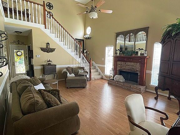 Beautiful home with open floor plan located in popular subdivision. This is approximately 1900 square feet, with 3 bedrooms, 2.5 baths , a great room, formal dinning room and lots of storage. Huge master bedroom and bathroom with garden tub, separate shower , his and her walk in closets and vanities. The great room has high vaulted ceilings and is complemented by an open staircase overlooking the balcony. Outdoor amenities include a covered back porch, concrete driveway and separate storage unit.
