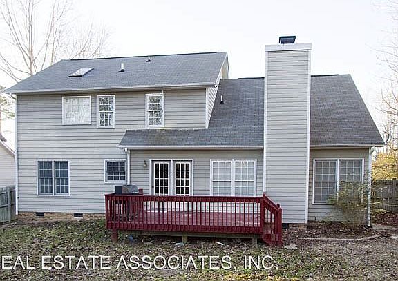 3344 Daingerfield Drive, Raleigh, NC - Four bedroom, 2.5 bath single family home with 2115 square feet of space. Family room has wood-burning fireplace. Carpet throughout. Master bedroom has walk-in closet and master bath has double vanity and garden tub. Kitchen appliances include electric stove, refrigerator, dishwasher, washer/dryer connections,heat pump and central air conditioning. Deck, fenced yard, and 2-car garage included. Pets negotiable. Directions: Durham North: Neuse Crossing. From Hwy-540 in Raleigh, take exit 18 onto Hwy 401 (Louisburg Road). Right on Mitchell Mill Road, then Right on Neuse Crossing Drive and Left onto Daingerfield. Shown by appointment only. Please email Julie Anderson at janderson@realestateassoc.com or call her at 919-287-3203. (RLNE3124710)