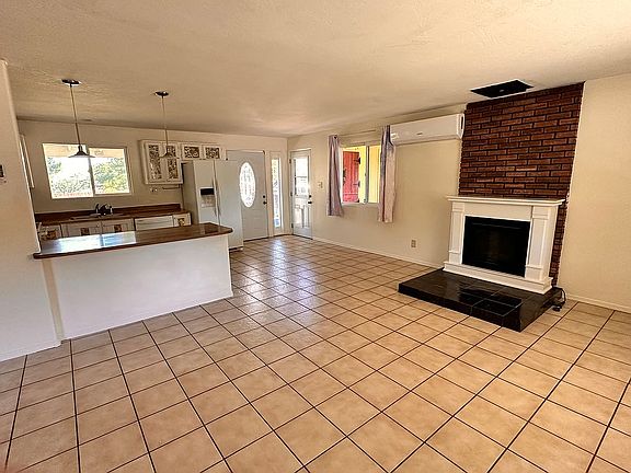 This cute home has an open floor concept with living room, dining room and kitchen. Mostly tile floors with some vinyl.