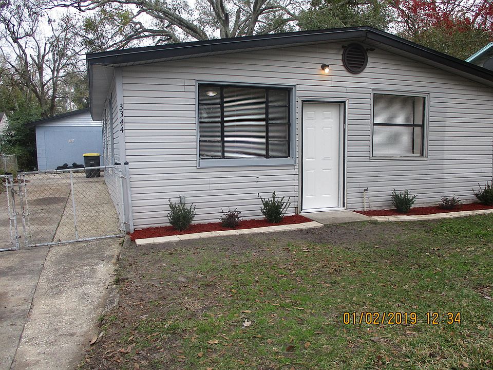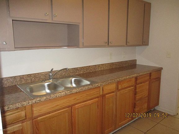 This single family house has living/dinning room combo. Most of house is ceramic tile. Bedrooms have carpet. Washer/dryer hook-up room inside.. 3br/1ba. Central heat and air, stove and refrigerator furnished. New lower cabinets and counter in kitchen. Note: the 3rd bedroom is small. This house has a very large concrete block building in back for additional storage or use as you desire. (with approval) Please call for additional information. No sign on property. All details must be verified.