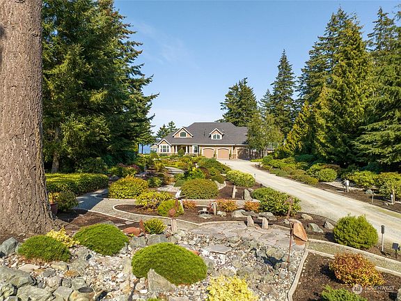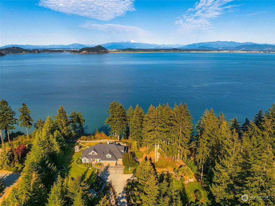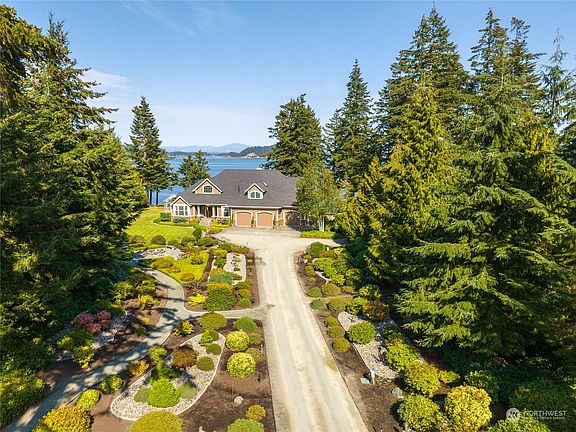 Imagine driving through your park like English garden towards your stately home w/spectacular water, island & Mt. Baker views!! The perfect home where you are greeted by a dramatic two-story entrance w/grand staircase & lovely chandelier. Formal living room, dining room, family room & office w/built in desk & cabinets are adorned w/lovely light hardwood floors. Spacious kitchen enjoys beautiful granite counters & large island w/seating. Primary bedroom is located on the main floor & boasts amazing views & an ensuite bath w/deep, jetted tub & sep. shower, dual vanities, plus a walk-in closet. Fabulous upper-level guest suite w/private living room and bath. Additional bedrooms and a den also enjoy the water views. Adjacent lot is included.