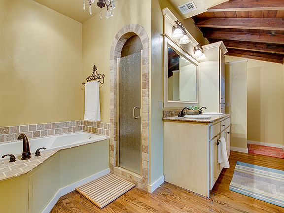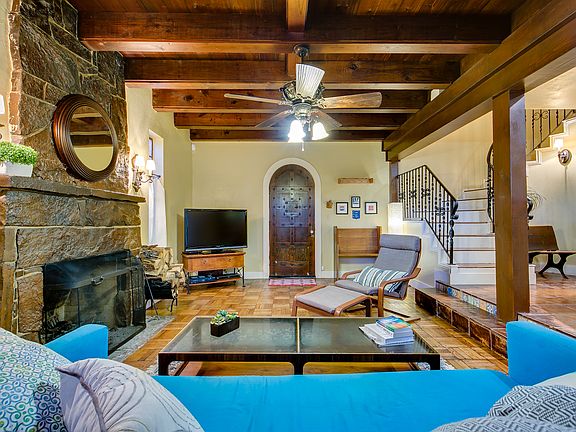 Beautiful Mediterranean Estate near Historic Denniston Park. The grand entry and sweeping spiral staircase make for a perfect first impression. Impeccable design and craftmanship featuring wood & tile floors throughout accented with vaulted ceilings, exposed beams and arched doors. Stunning master suite with whirlpool tub and walk in shower. Designed for entertaining, the kitchen is open to the living with granite counters and a gas range. Romantic ambience with three incredible fireplaces inside and another stone fireplace in the secluded outdoor area. Corner lot just down the street from the park and within a few minutes of everything in the Urban Core. Desirable layout with modern amenities. This is the home you've been waiting for!