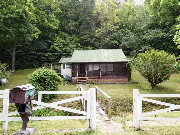Picturesque setting! Mountain, creek, barn, lean-to, screened porch, side deck w/pergola. Stone walk-way. Bridge. Granite in bath, kitchen, utility room, porcelain tile floors. All new kitchen + bath. Lovely! Repaired foundation. Darling cottage. Barn needs TLC.
