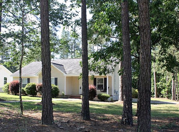 Adorable ranch home on a nice, quiet corner lot in beautiful Dearing!! Home features an oversized living area with corner wood burning fireplace, kitchen with bright and walk-in pantry with window overlooking the quaint covered front porch with porch swing. Master bedroom with tray ceilings and walk-in closet, two other bedrooms, one with built in desk area for studying. Back yard goes beyond fenced area which includes a room storage building and oversized patio area.