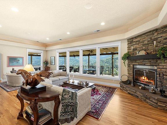 This private hillside sanctuary offers elevated living with truly breathtaking river, mountain & valley views, minutes to town! Expansive windows frame postcard-perfect views - a testament to the timeless beauty that surrounds you at this enchanting retreat. Welcoming waterfalls playfully point to the koi pond lining the landscaped front entrance while the home's casement windows & doorways let in the joyful waterfall sounds. Upon entering the home immerse yourself in an open floor plan that begins to reveal the captivating views. Multiple living/entertaining areas w/FPs & 2 ½ kitchens to please any chef! This 2bd/2ba home could easily be reconfig'd to have add'l Bdrms if desired, but is currently masterfully designed w/2 Primary suites. Add'l: Sep XL pergola patio for add'l outdoor entertainmt/relaxing, Ofc/Study w/waterfall views, 3 car gar, gated paved drive & too many features to list so for more go to: clients.wcimages dot com/3344-Pearce-Park-Rd/idx