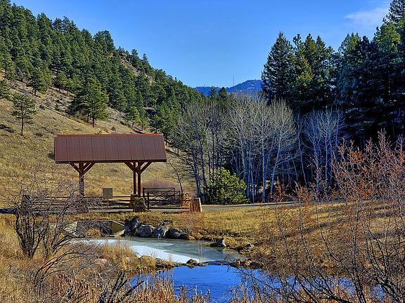 Stunning snow capped Mt Evans views from this serene 10.5 acre parcel with a mix of pines, aspens and meadows on a gently sloping park-like lot. This Exclusive North Evergreen Community includes a total of 6 platted parcels with three already sold and two $2M+ custom homes in the process of being constructed. Multiple building sites available with great terrain for easy gentle driveways. Extensive forest management has already been completed that has opened up the views and sun to the property. From the impressive gated bridge entrance, the gently paved access winds up to the property passing ponds, waterfalls, and expansive meadows. Convenient to Evergreen amenities and I-70 for commuting to Denver or to enjoy world-class skiing and fishing destinations. Great opportunity to build your dream home where you can even practice your skiing down to the gate on your own land. Showings are by appointment only. No trespassing please, including drive-bys. Call today to schedule your tour.