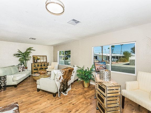 This is got to be the most beautiful home in the Ti Palm Estates 55+ community. A must see to appreciate all that this home has to offer. The property is centrally located near major shopping and is very commuter friendly. The park offers a low HOA and social fee that includes unlimited golf,restaurant,lounge,fitness center, lighted tennis courts an Olympic size pool and spa. The seller took great pride in choosing the right upgrades which include new laminated floors, new energy efficient windows, a new A/C and Heating unit, plus an indoor laundry room.The fully renovated kitchen boast a new stainless steel range hood, new granite counter tops, new appliances, new cabinets and elegant glass tile backsplash.All bathrooms have been renovated.The Best deal in town and it's move in ready.
