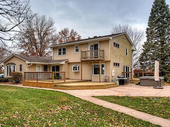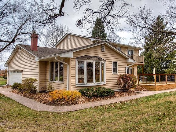Here's the in-town acreage you've been waiting for! 3.7 acres, on pavement, near schools, bike paths and shopping. Living here, you have neighbors (but not too nearby!) and have the ability to have a horse or backyard chickens. Four bedroom, 2.5 bath home, with excellent opportunity for a first floor master suite to be added. 1st floor laundry. Mostly new windows, insulated vinyl siding, hardwood floors. Fantastic outside space for entertaining and views in every direction.New owner will connect to city sewer. City water, plus a well for outside watering. Sits on a bluff overlooking creek, trees, open prairie. Even a resident bald eagle! This property also includes a 25% ownership in Tanglewood Estates, a 29 acre property with preserved wooded land and prairies behind the property. What a great place to call home!