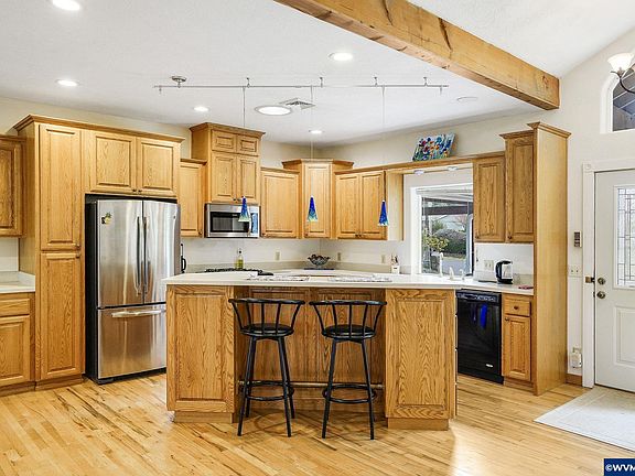 Breathtaking custom home nestled on 1.63 private acres. Recently updated kitchen w/Corian countertops, SS appliances & custom island. Spa-like ba w/soaking tubs, walk-in showers, chic tile. Elegant white oak floors throughout. Open concept w/abundant natural light, 2 primary suites, flex bonus rooms, tons of storage. Backyard oasis w/flower beds, walking trails to creek & treed boundaries. Dream shop/barn w/concrete floors, tall ceilings, RV door, stadium halogen lighting. Ext. driveway, covered carport.