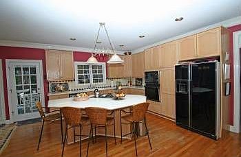 - Kitchen Features: Cabinets Stain, Eat-in Kitchen, Solid Surface Counters, Kitchen Island