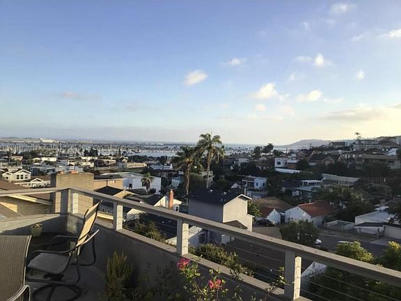 The rental unit is furnished ( will rent unfurnished at reduced rate) and has it's own entry and is located on the second floor of a two story craftsman style house. The house is located in Pt. Loma, bayside, at the top of a hill, at the end of a dead end street, in a quiet neighborhood. The unit has its own private deck with beautiful views overlooking Shelter Island, the ocean and harbor entrance, as well as Coronado, Mexico, and a little bit of downtown. The interior is craftsman style with an open layout, hardwood floors throughout, carpet in the bedroom. This rental comes fully furnished. We're looking for a quiet retiree, military, working professional or couple who appreciates a family/mature neighborhood. We prefer to rent this furnished 6 months to a year, but will be flexible. The house is located on an oversized lot with 40 fruit trees and raised bed gardens in the front and backyard, all of which tenant may partake in. $3,000 utilities included Basic cable & internet included Month to month On street parking Shared laundry Private entrance through garage