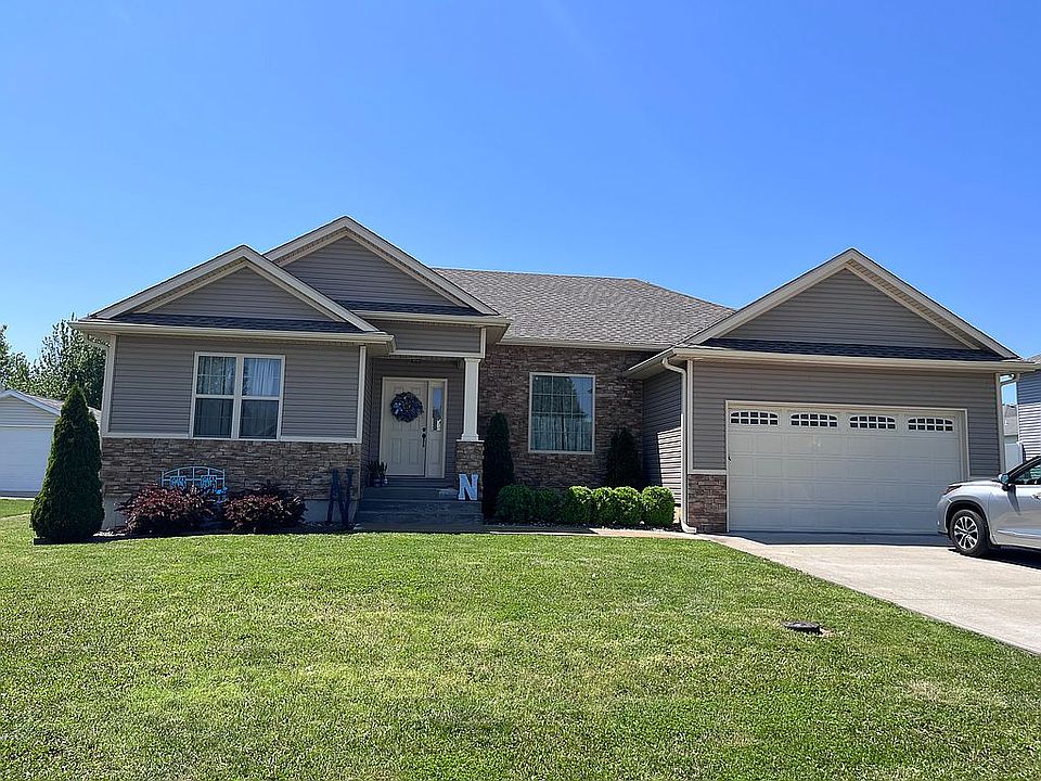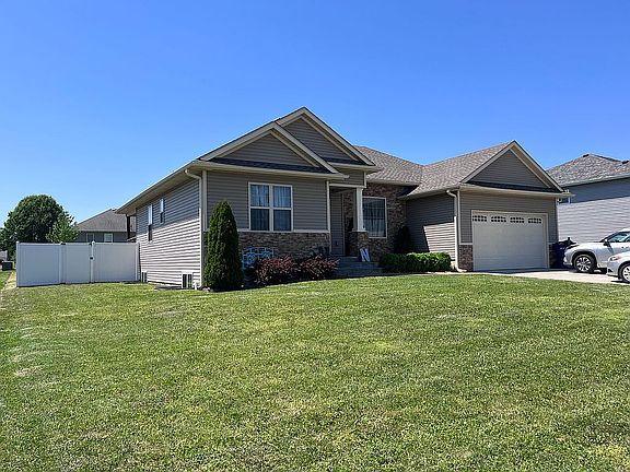 Natural light streaming in provides a bright & inviting theme the moment you step inside this elegant 4BR, 2BA open-concept Ranch. You will be embraced by the modern ambiance of the cool grey paint color setting off the white doors & trim. Enormous Great Room w/ gleaming oak floor leads to the beautiful kitchen with food prep/serving island, granite counter tops, gorgeous oak cabinets, big pantry, & large dining area w/ gateway to the covered back deck. On one side of the floor plan you will find a private master suite w/ huge walk-in closet, luxurious jetted tub/shower, & double-sink vanity. Just before the garage exit a stylish pocket door leads into conveniently located laundry room. More pocket doors on the bedroom closets add to the charm of each room. The opposite side of the plan features two nice-sized bedrooms and one bath. Ample main level storage space is supplied by the entryway coat closet and 3 hallway linen/utility closets. Follow the staircase to the basement level and you will see the spacious 4th bedroom w/ gigantic walk-in closet. Remainder of the basement is excellent storage area or could be finished for even more living area. Located in growing neighborhood just outside city limits near Hospital. Call Jayme Noble 214-912-1097 to set up a showing