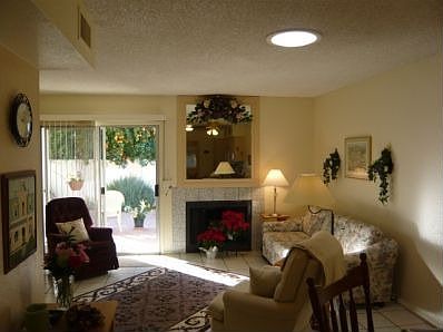FULLY FURNISHED! JUST BRING YOUR TOOTH BRUSH! MOVE-IN READY!IMMACULATE 2MBR/2BATH HOME IN 55+ ADULT COMMUNITY!HEATED POOL/SPA and LUSH GREEN LANDSCAPING*COZY FIREPLACE*CORIAN COUNTERTOPS IN EAT-IN KITCHEN W/WHITE MICROWAVE,SMOOTH TOP STOVE and REFRIGERATOR (INCLUDED)*SOLAR TUBES,SKYLIGHTS,LIGHT CERAMIC TILE andLIGHT CARPET IN BEDROOMS GIVE THE HOME AN OPEN AIRY ATMOSPHERE*ROLLER SHIELDS ON ALL WINDOWS*LARGE PATIO*EPOXY FLOORING IN OVERSIZED 2-CAR GARAGE W/CABINETRY FOR STORAGE*MANY OTHER EXTR...
