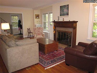 Beautiful bright and clean Tudor! The living room features a wood burning fireplace, pretty hardwood floors and a small nook with built in shelves. There is a formal dining room with French doors that open to the back yard. The large eat in kitchen has newer stainless appliances, lighting and plenty of counter space. The master bedroom has a walk in closet as well as a private full bath with newer tile flooring and lighting. The full bath on second has newer tile floor and lighting as well. The third floor offers fresh carpeting, a bedroom looking out into the trees and a full bath with a stand up shower. There is an oversized family room in the lower level with newer carpeting and lots of storage. There is a large Fernway yard totally fenced and has a patio as well. Improvements to this home include the electric panel, blown in insulation in the attic and 2nd floor, solar powered roof fan, water heater and light fixtures. Many newer Anderson windows.