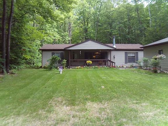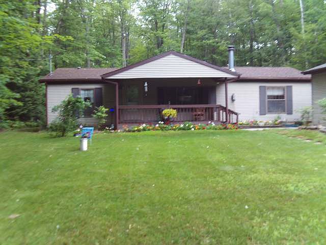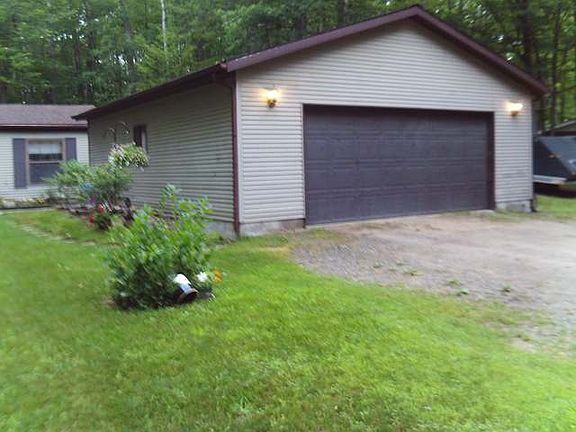 Hello Buyer. Take a look at this Manufactered home on a 82.5 x 210 lot. THis 1340 sq ft.home looks nice thru out. Then add the 24x30 garage. Also has a shed our back. Flowers decorate the home all the way around. Home offer 3 bedrooms, 2 baths, large living room and dining rooms. Newer carpeting in living room, dining room and hallway. New roof 2017. 5 inch well new 9 years ago. Lp gas forced air furnance. Then accross the street is hundred acres of state land if you like to hunt. Then at the end of the road is a public boat launch to Long Lake an all sports lake. So ask to see this place, just call the office.