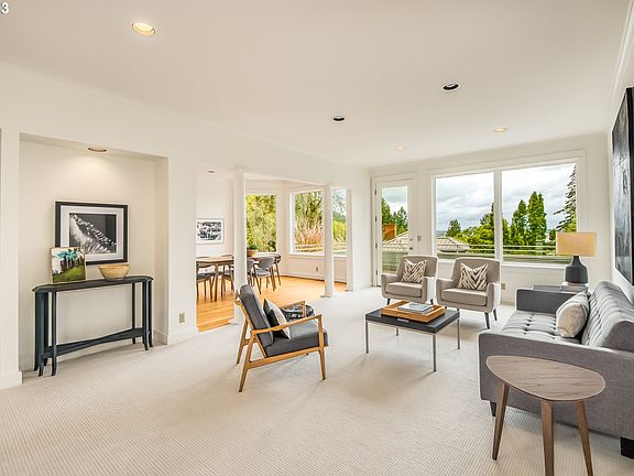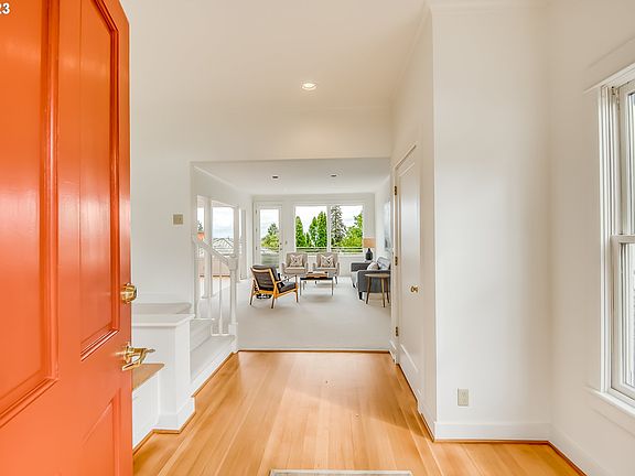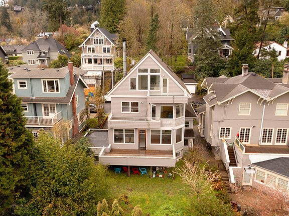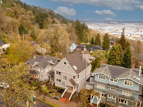You wouldn't think it's possible to live both in the city & in the forest. To feel both connected to a neighborhood & also relax above it all. But life on Portland?s coveted Franklin Court offers this rare balance in NW Willamette Heights.Light emanates from every direction in this rebuilt 5 bed / 2.5 bath home. With 3 bedrooms and a family room (technically a bedroom) on the 2nd floor, and a master suite on the 3rd level, this home offers the space to celebrate together as well as room for everyone to have private space. Beautiful fir floors and large picture windows tie in classic details throughout.A flat neighborhood block is rare in Willamette Ht's with 5000 acre Forest Park (2 blocks away) and Franklin Court offers a community feel along with sweeping views. The large north-facing windows connect you to 3 mountains, the Willamette River, and the Cascade range.The first floor is ideal for hosting, with an open layout between the living room and dining room, as well as an eat-in kitchen for smaller meals. Walkable to shops on NW 23rd, Chapman Elementary School,Library,Public Transit and only minutes to Highway I-405, this home is connected to Portland while being nestled away. The 3rd-floor master suite includes sweeping views, two closets, a full bath, and an office with a sunrise view of Mt. Hood. Rebuilt in the early ?90s, One family has made this their home for over 30 years.The unfinished daylight basement of approximately 1,000 sq. ft w/ 2 ext. doors, is a blank slate for you to create.(apt., Air bnb?) The attached garage, double-long driveway, and ample on-street mean parking is always easy. All these traits together make this home a rare beauty beyond compare! OPEN Sun.4/30 2-4PM PLEASE REMOVE SHOES OR WEAR BOOTIES PROVIDED. Sq. Footage is apprx. [Home Energy Score = 1. HES Report at https://rpt.greenbuildingregistry.com/hes/OR10213738]