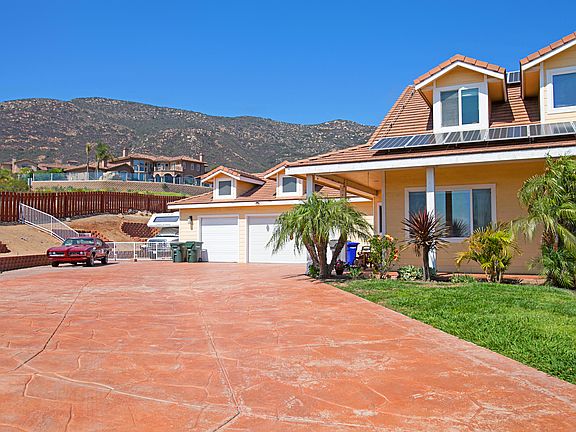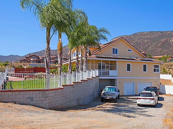 Home is being offered in a value range of $769,000 - $829,000. Gated oasis nestled among the tranquil hills of Jamul. This estate is located on a 2.6 acre usable lot with breathtaking panoramic views. The home itself features solar panels, an RV stamped concrete pad, 6 car driveway plus a 3 car garage upstairs and 4 car garage downstairs with ample storage, a usable 1,500 esf. basement, 4 bedrooms & 4 full bathrooms, plus a formal LR, DR & Family room/den area. Step inside the custom French Door entry and feel the warmth this home has to offer. The front office area features custom built-in desks with panoramic views, custom built-in shelving throughout, ceiling fan and brand new carpet, the formal living room leaves endless opportunities for entertaining as it connects to the newly deck with panoramic views and opens to the formal dining room and kitchen, it also features tile flooring, a custom rock fireplace with mantel, recessed lighting and ceiling fan. The oversized kitchen features a wonderful area to entertain family, friends or just enjoy an evening in. Custom cabinets & walk-in pantry lead to no shortage of storage space, recessed lighting, granite counters and matching granite backsplash add to the elegance along with stainless steel gas cook top, double oven, dishwasher, refrigerator and microwave all convey with sale. Formal dining room with beautiful mountain views, tile flooring and ceiling fan. The master retreat is located downstairs and features all new carpet, gorgeous views, double ceiling fans and master bathroom retreat with tile flooring, double vanity sink area with granite counter tops, separate shower area and large jetted tub. Second bedroom is downstairs and features hardwood flooring, ceiling fan and views out both windows, upstairs leads to a formal family room with all new carpet, dual ceiling fans, attached full bathroom, huge windows with views and so many possibilities to entertain - media room, pool/game room, gym, art studio, options are endless.