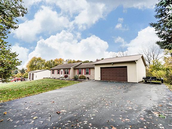 The perfect country setting... featuring an impressive 6 acre parcel of beautiful land with a walkout ranch, spacious detached garage and a bonus 30x40 outbuilding! This beautiful home offers over 2,300 finished sq. ft. of living space with four bedrooms, 2.5 baths, finished basement and a spacious backyard deck. Here you can entertain or enjoy nights in at extra living areas in the lower level. A special place with many great attributes including apple trees, trails plus your private shooting range! Enjoy the convenience of living only a short commute from schools, town conveniences and state highway.