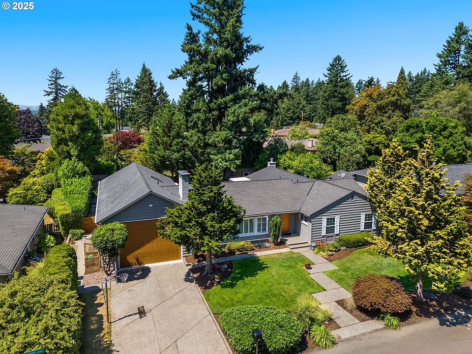 Don’t miss this great deal! Located in the unique and truly special Old Vista Hills neighborhood, this stunning 4-bedroom, 2.5-bath mid-century modern ranch offers over 3,500 sq ft of beautifully updated living space. This quiet and peaceful neighborhood is filled with well-kept and tastefully updated mid-century homes on large lots, with downtown Portland only 12 minutes away. The home features newly refinished hardwood floors, new interior paint (summer 2025), sleek designer bathrooms, and spacious, light-filled rooms. Thoughtfully designed for indoor-outdoor living, there is a seamless flow to the expansive west-facing backyard—perfect for enjoying long summer evenings and cozy winter gatherings around the gas fire. The updated kitchen is a showstopper with stainless steel appliances, gas range with hood, wine cooler, quartz countertops, and wet bar. The primary suite features a luxurious en-suite bath with a walk-in shower and heated floors. Additional highlights include a generous mudroom, basement workspace, and a huge over-sized 52' deep garage with a 12' high door - large enough for your boat, RV, or car collection - a truly one of a kind feature. The garage also has a rear roll-up door for easy access to the backyard, as well as a small finished loft space, which can be used as a hobby room, storage, or even an extra bedroom. The outdoor space is an entertainer’s dream, with a large covered patio and hot tub, paver patio with gas fire pit, horseshoe pit, sandbox, and an adorable playhouse for the kids. This location is hard to beat, with unincorporated Washington County taxes, a Portland address, and great schools in the area. Front portion of roof replace 10/2025. Don't miss this opportunity!