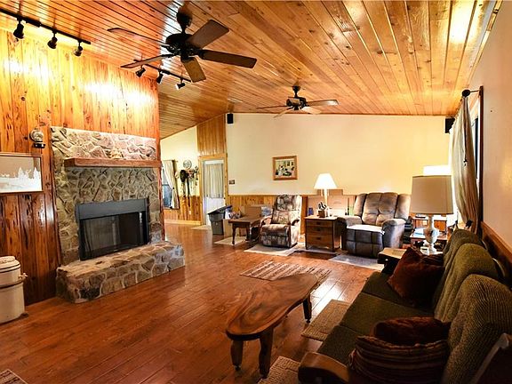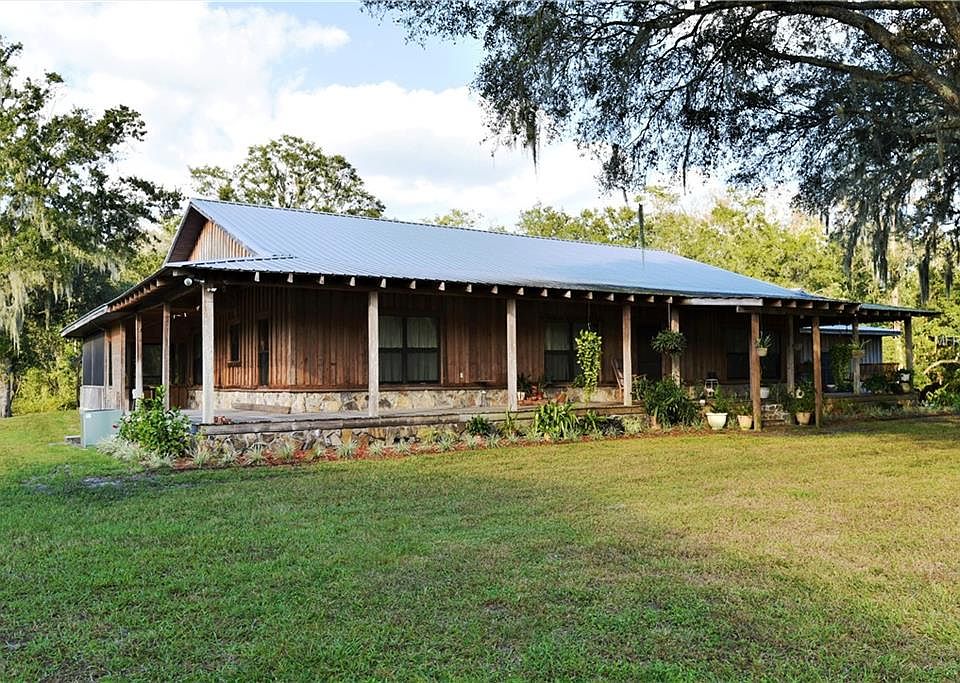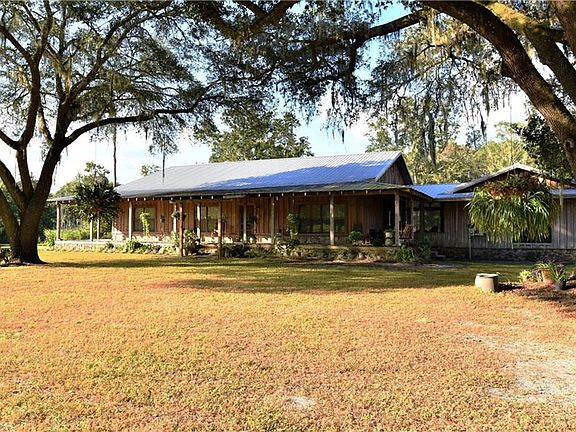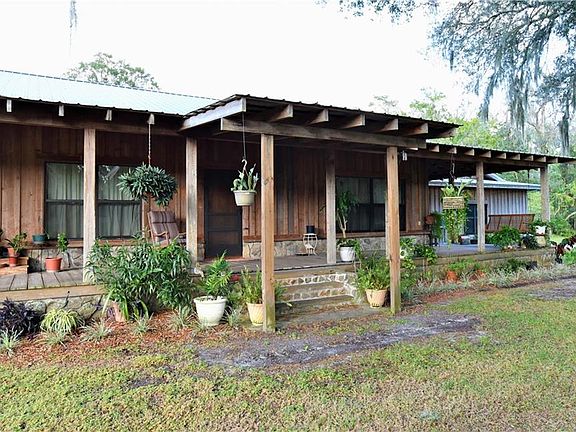 LOOKING FOR PRIVACYY? Say goodbye to traffic noise & hello to singing birds in this charming rustic home situated on 14+ acres! This home is over 2200 S.F. living area and features 3bed/2bath with generous sized rooms throughout! Wood floors and ceilings through the main parts of the home, tiled wet areas and newly carpeted bedrooms. The living room offers a stone fireplace, the oversized kitchen offers a huge pantry and a breakfast nook that opens to the back porch area-would make a great office or mud room. The master suite opens by French doors to the back patio, master bath offers a corner garden tub & large separate shower. The side entrance garage measures 28x28 and accommodates your large truck or boat with ease. Plenty of outdoor entertaining with a complete wrap around porch, with the side and rear portion of the porch being screened in. The detached shop is 48x36 with 14 ft. ceilings, upper level storage, 12x16 and 8x8 roll up doors PLUS an upstairs efficiency apartment. The shop has a separate electric meter from the home and is a great set up for a home based business. Apprx. 4 acres is cleared, the rest of the property is wooded. Bring your all your toys, there's plenty of room here! Easy access to Interstate 4 for commuting to Tampa/Orlando areas, minutes to major shopping, restaurants, golf & more!