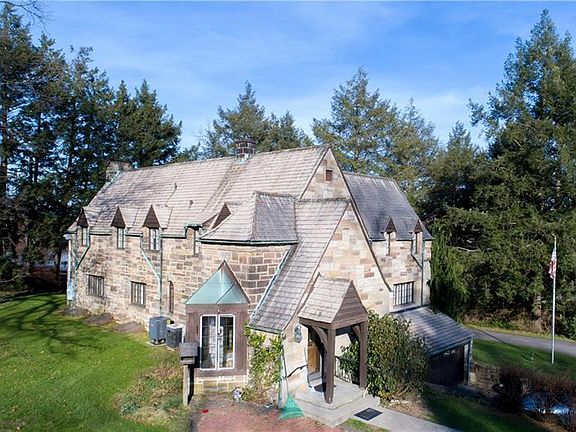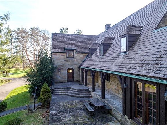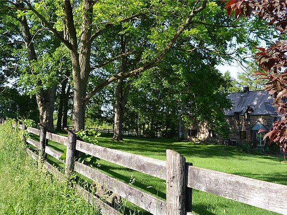 Surrounded by 10 lovely acres, the integrity and craftsmanship of this lovely cut-stone home and carriage house is unsurpassed. Seize the rare opportunity to acquire this landmark property, just one mile south of New Wilmington. Dormered windows and hand hewn beams lend charm to the home accented with multiple roof lines. The vintage charm of hardwoods, knotty pine, and built-ins allow endless possibilities and potential for this truly unique property. Spacious first floor living and dining areas are complemented by a sun room, cozy breakfast nook, and den. Three bedrooms, office nook, and two full baths complete the second floor. The one-bedroom carriage house offers additional living and storage space. Terraced stone porches permit private enjoyment of the changing rural landscape, with spring fed pond. This is a property that will create a legacy to be passed from one generation to the next.