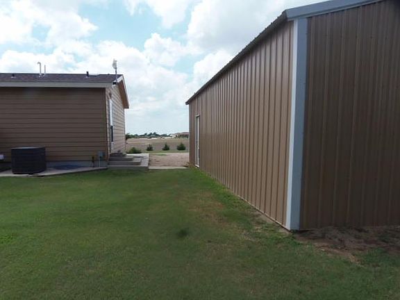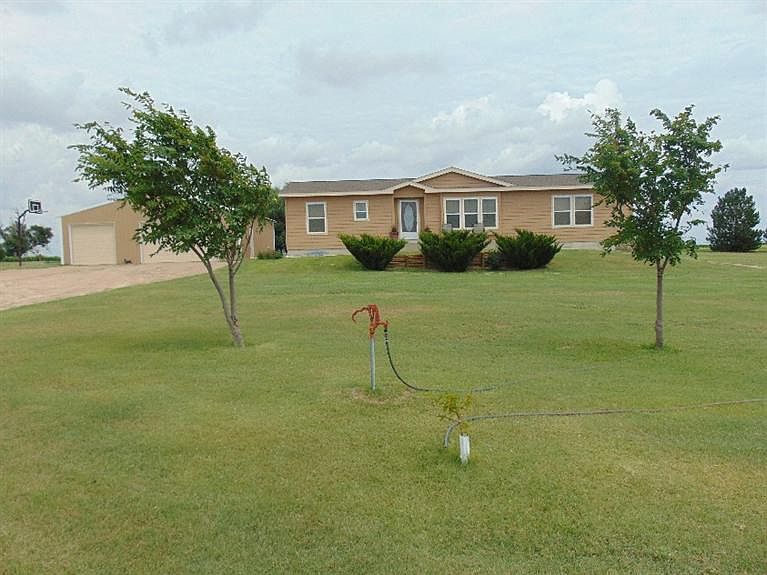 Great property not far from town. Paved road, 5 acres, 36x36 shop/garage. Very nice finish work. Trees on drip, 4 spigots conveniently placed so it is easy to water the buffalo grass lawn. Horses allowed! 36X36 Shop-garage has 100 mph wind stamp certified!