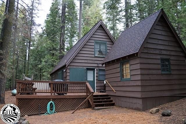 This very well maintained cabin is perfect for the person that wants to be up in a beautiful part of the Stanislaus National Forest. The main floor has has a good size living room with a rock fireplace and doors leading to the front deck and back patio. There is a very large main floor bedroom that could be made in to two bedrooms if wanted. There is stairs leading up to a cat walk with a loft style bedroom on each side. The bathroom has a nice tiled in bathtub and the kitchen has plenty of cabinets and also a breakfast area. An added feature is a large detached shed for plenty of extra storage that many cabins do not have on Forest Service land. This is priced very fair for the quality and size in this area. Call soon before it is gone at 209-985-3578 or 209-985-7524.