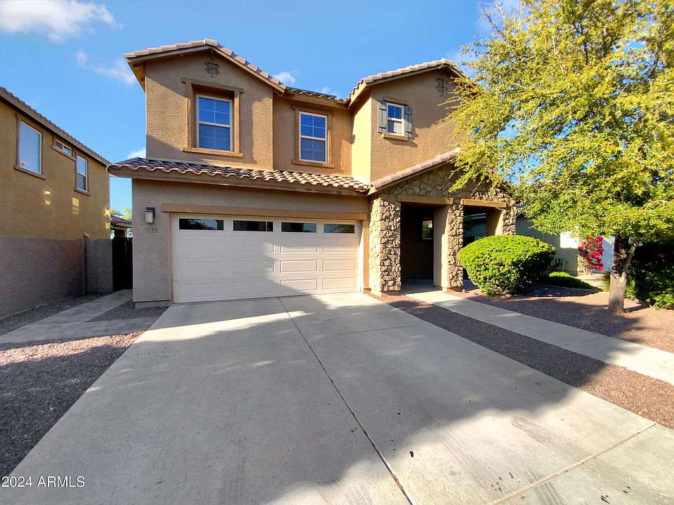 Charming two-story home in Lehi Crossing with stunning Mountain Views from the backyard. Features include new neutral carpeting, upstairs laundry, four bedrooms, 2.5 bathrooms, and a 2-car garage. Enjoy the tranquility of this gated community with easy access to the 202 freeway. The backyard boasts orange trees and low maintenance turf, along with PAID SOLAR panels. Ample storage under stairs and freshly painted interior complete this inviting home!